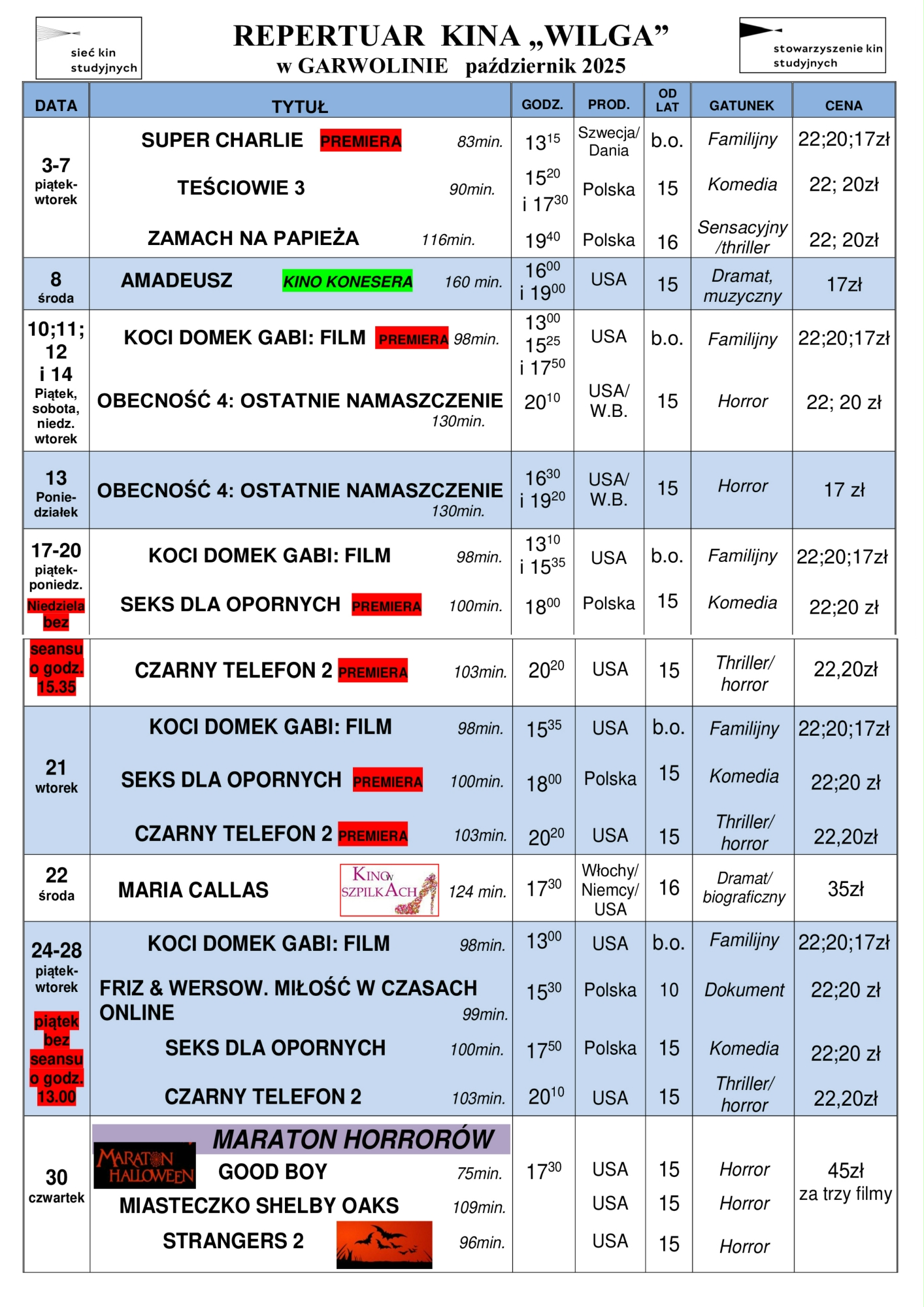 1 listopada kino nieczynne2 – 4 listopadagodzina 13:00