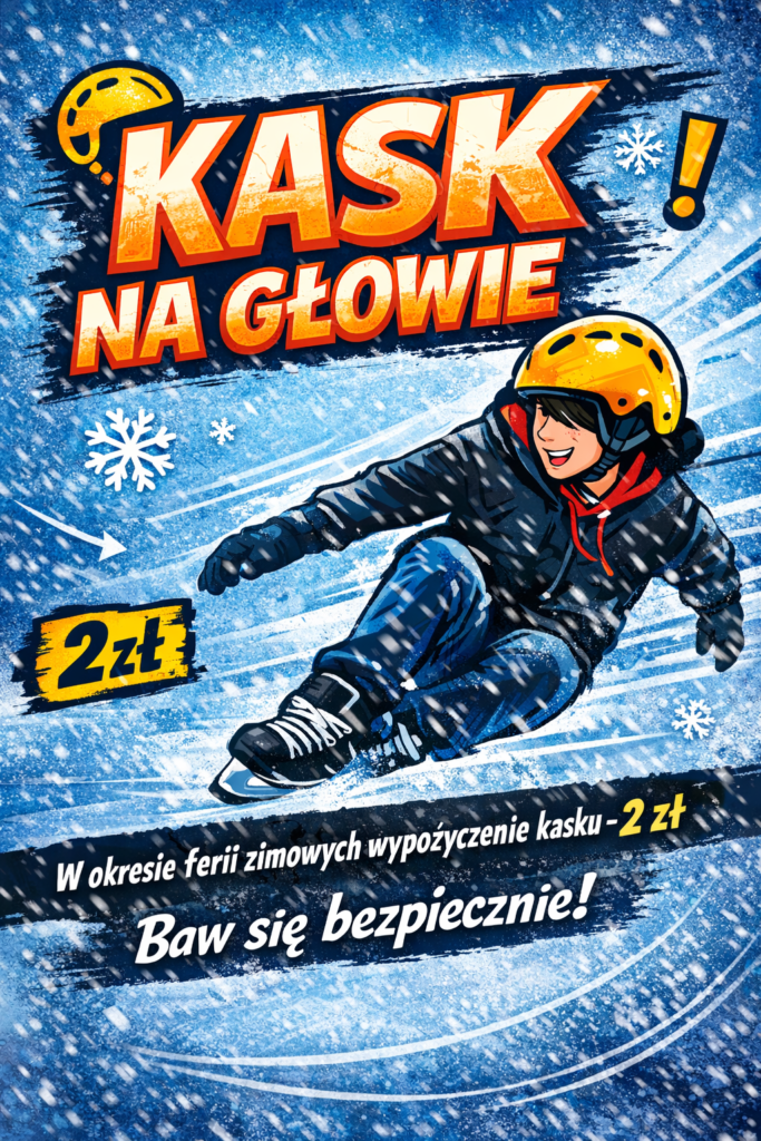 W czasie ferii zimowych 2026 r. cena wypożyczenia kasku to 2 zł.