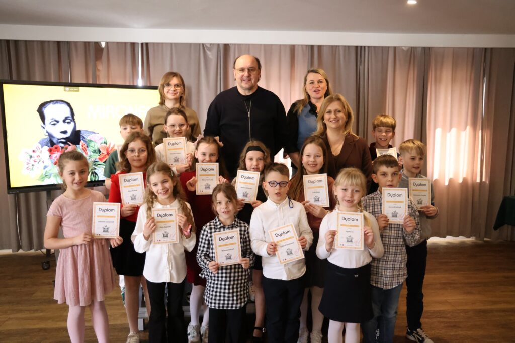 W czwartek 19 marca w sali konferencyjnej odbył się konkurs recytatorski. Celem konkursu było zachęcenie do czytania poezji. Także tutaj Miron Białoszewski był tylko pewnym impulsem. Młodsi uczestnicy krążyli wokół Mirona, starsi czasem go dotykali. Dzieci z klas 1-6 recytowały wiersze Wandy Chotomskiej, siódmo- i ósmoklasiści na warsztat wzięli jeden wiersz dowolnego poety polskiego i jeden wiersz Białoszewskiego, młodzież szkół średnich skupiała się tylko na Mironie, tak na prozie jak i na poezji. Przewodniczącym konkursowego jury był Adam Woronowicz – aktor teatralny i filmowy. Obok niego w komisji zasiadły: Kinga Smak-Lasocka dyrektor Gminnego Centrum Animacji Kultury oraz Luiza Kondej-Matusiak i Justyna Dybcio z ramienia Centrum Sportu i Kultury. W podsumowaniu wyników jury podkreślało, że tegoroczny konkurs był na bardzo wysokim poziomie, że o zwycięstwie decydowały niuanse. W sumie wzięło w nim udział ponad 30 uczniów. Poniżej lista laureatów.